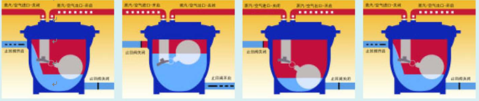 3.隨著凝結水的排出,浮球下降,直至聯動機構運作到原來相反的位置。